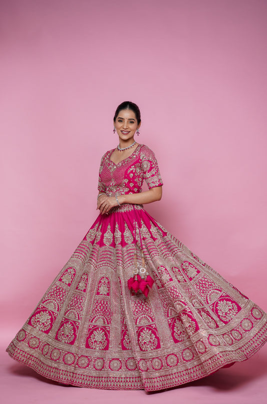 Rani Pink pure zardoshi bridal lehenga with colour and size customisation option available
